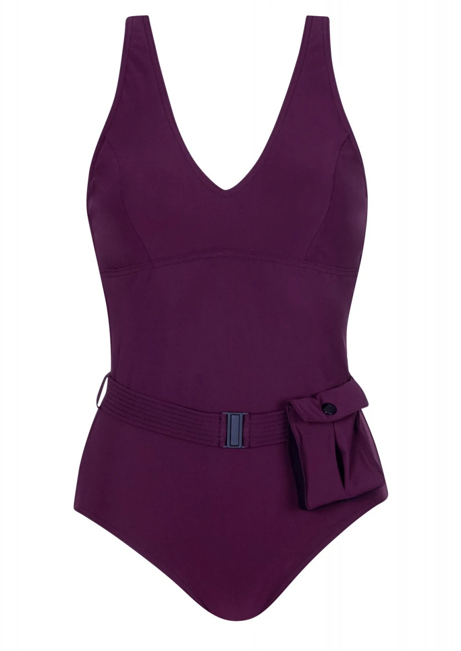 Badeanzug mit Wow-Effekt. Einteiler mit Gürtel in einem wundervollen Dunkelrot. Ein weiteres Highlight ist der sinnliche Netzeinsatz am Rücken – dieser kann mit einem Hakenverschluss geschlossen werden. Verstärkt wird der extravagante Look durch das praktische Täschen am Gürtel, das abgenommen und mit einem Druckknopf geschlossen werden kann. Der Badeanzug mit herausnehmbaren Softschalen und einem hohen Rückenausschnitt ist komplett gefüttert. Durch diese Vollfütterung garantiert der Einteiler zusätzlichen Halt und ist besonders blickdicht.