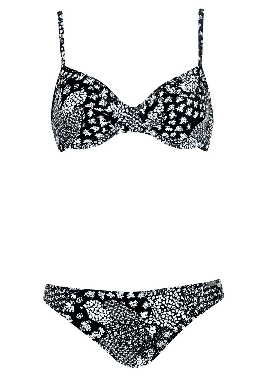 Nachtblau mit süßem, vielfältigem Druck in Weiß. Niedlicher Bikini mit Formbügel – diese geben der Brust einen optimalen Sitz und sorgen für Halt beim Schwimmen. Die Träger sind in der Länge verstellbar und am Rücken zum Aushaken.