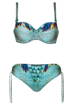 Ein sensationelles Design! Verwischtes Streifendesign in kräftigen Blautönen, Lila und Grün, darüber ein verwegener Animal-Print. Eine spektakuläre Kombination zweier Stile. Die unifarbenen Blenden an Top und Slip runden das Design ab. Bikini mit Formbügel und Futterstütze. Verführerisches Detail: Cut-Out zwischen den Cups, dieser wird mit Bändchen gehalten. Dadurch ist die Passform des Tops individuell einstellbar und ein perfekter Sitz garantiert. Die Träger sind verstellbar. Slip in klassischer Form.