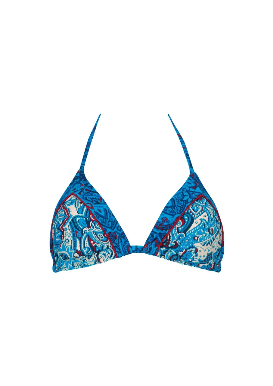 Lust auf süße Bademode? Wir empfehlen Ihnen dieses wunderschöne Paisley-Muster mit Farbmix. Eine schmale, rote Paspel trennt die beiden Stoffe – eine zauberhafte Kombination des modischen Prints auf weißem und türkisem Hintergrund. Triangel Bikini-Top mit herausnehmbaren Softschalen. Damit beim Liegen nichts stört, ist das Top am Rücken mit einem Verschluss zu schließen und kann im Nacken gebunden werden. Nachhaltige Bademode: OLYMPIA® GOES NEXT LEVEL – das Polyamid für den Oberstoff ist zu 100 % aus recycelten Fasern.