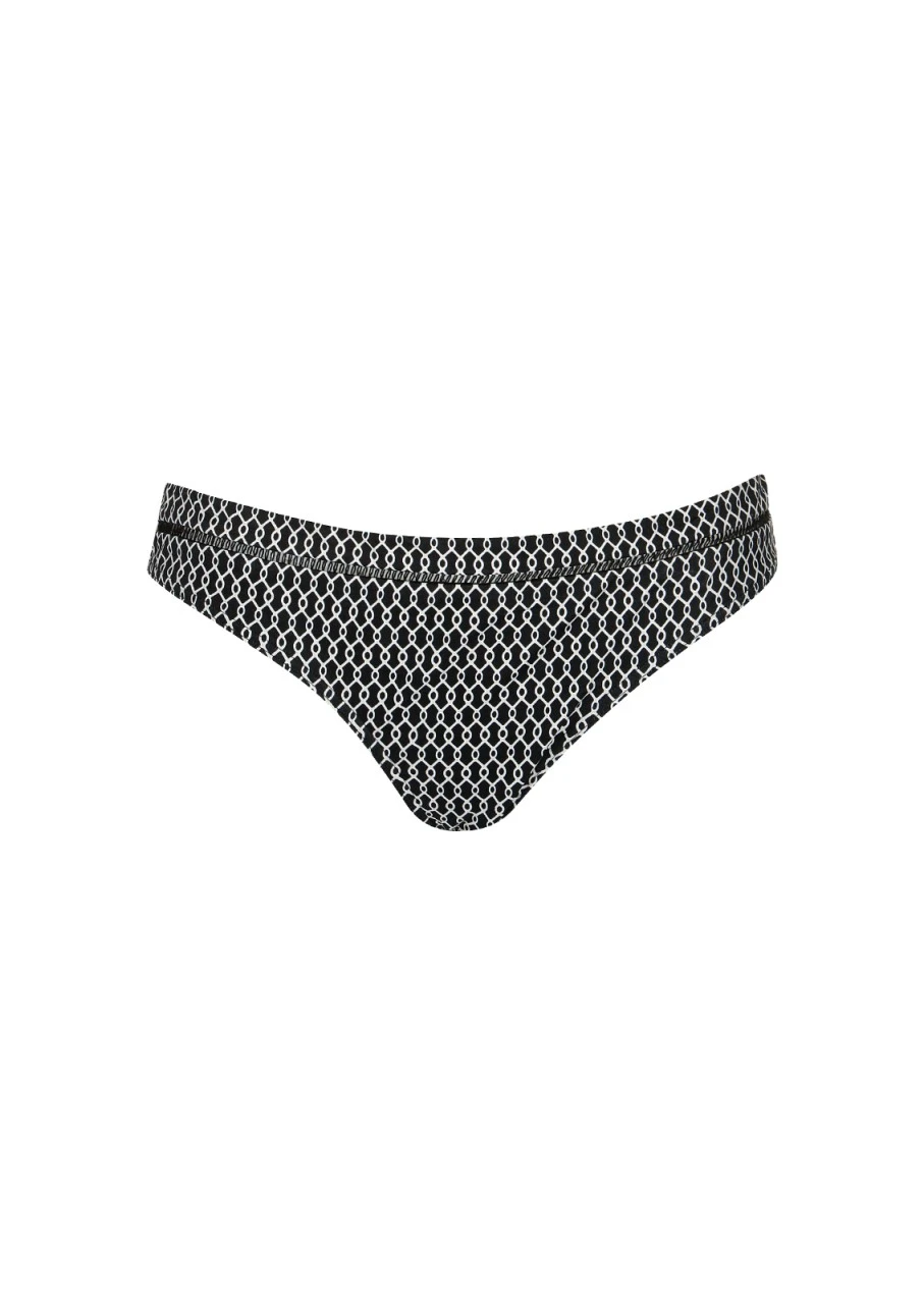 Verführung in Schwarz! Edles Schwarz kombiniert mit einem weißen Kettenprint zaubert eine faszinierende, stilvolle Optik. Süßer Slip mit schmaler Schnittform und perfektem Sitz! Schönes Detail: Das schwarze Zierband an der Vorderseite des Slips besticht durch seine Transparenz. Kombinieren Sie den Bikini-Slip mit einem Top im Design der Serie oder einem unifarbenen Oberteil in Schwarz, das perfekt mit dem Dessin harmoniert. Nachhaltige Bademode: OLYMPIA® GOES NEXT LEVEL – das Polyamid für den Oberstoff ist zu 100 % aus recycelten Fasern.